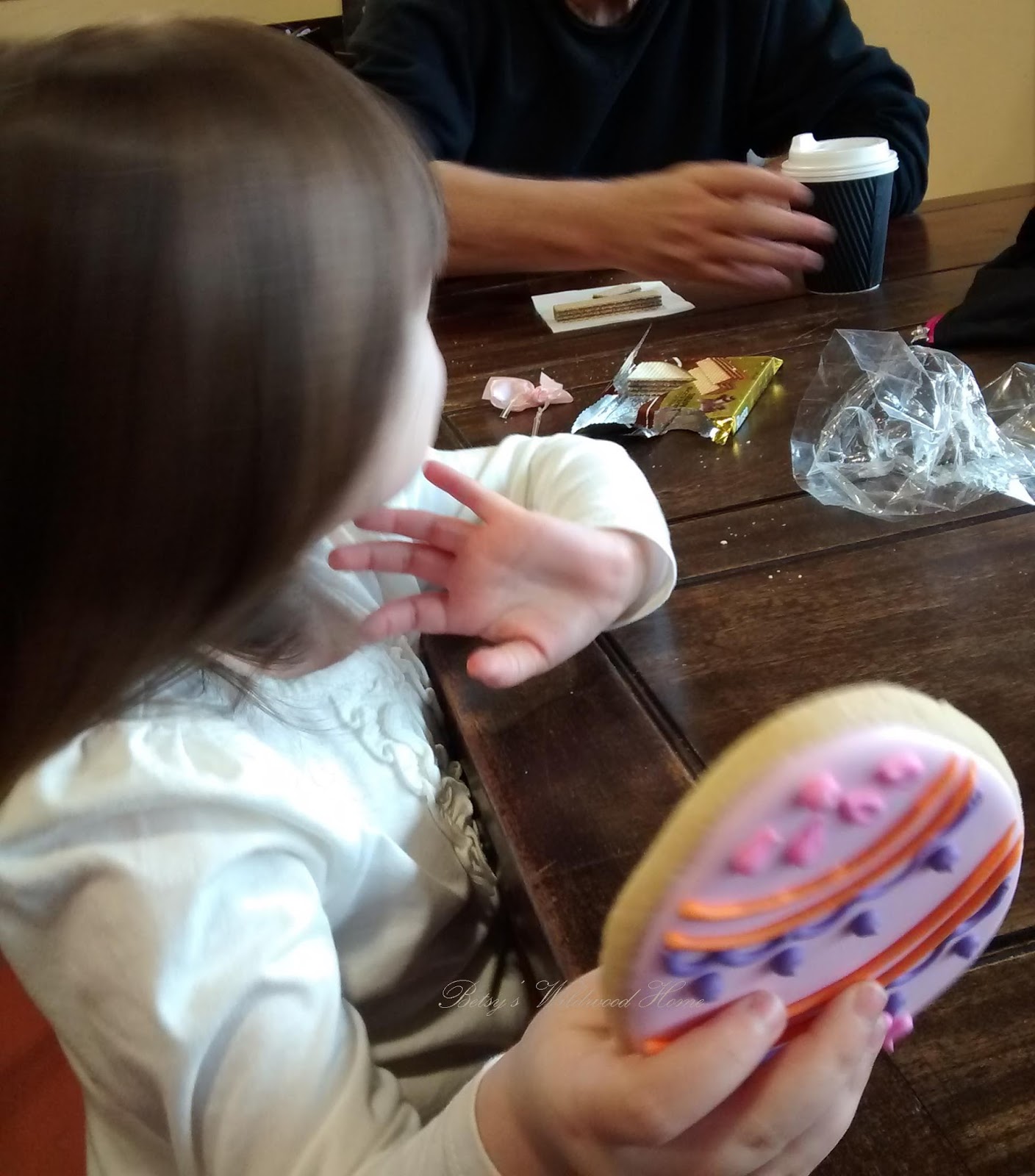 Stopped in Southern Season with the grand girls for a sweet treat. Adalyn had her eyes set on from the start a large Easter Egg decorated sugar cookie - she loves her cookies.
