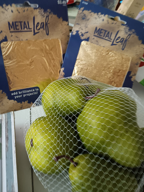 Some pears I plan on doing some crafting with along with the gold colored metal leaf sheets.